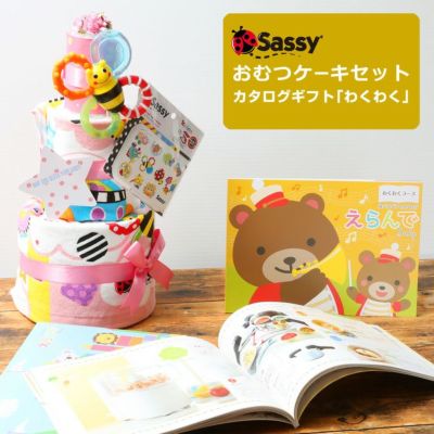 おむつケーキ sassy 3段 と 出産祝い カタログギフト えらんで わくわく セット ハーモニック