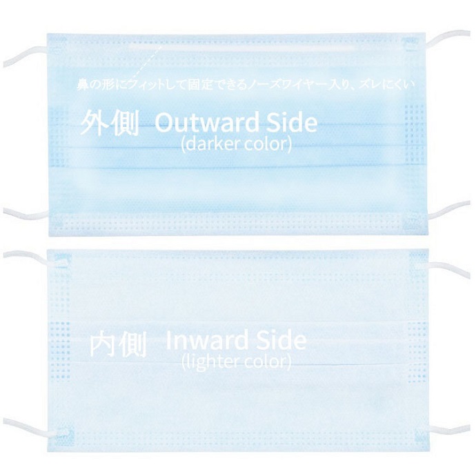 フイルター部分:PP不織布、PPメルトブローン不織布 耳紐:ポリエステル、PU ノーズフッター:PU