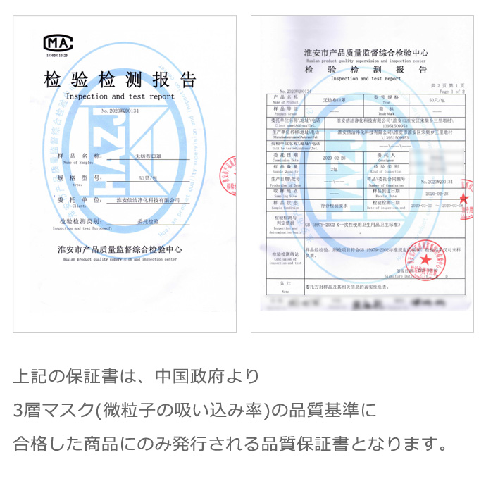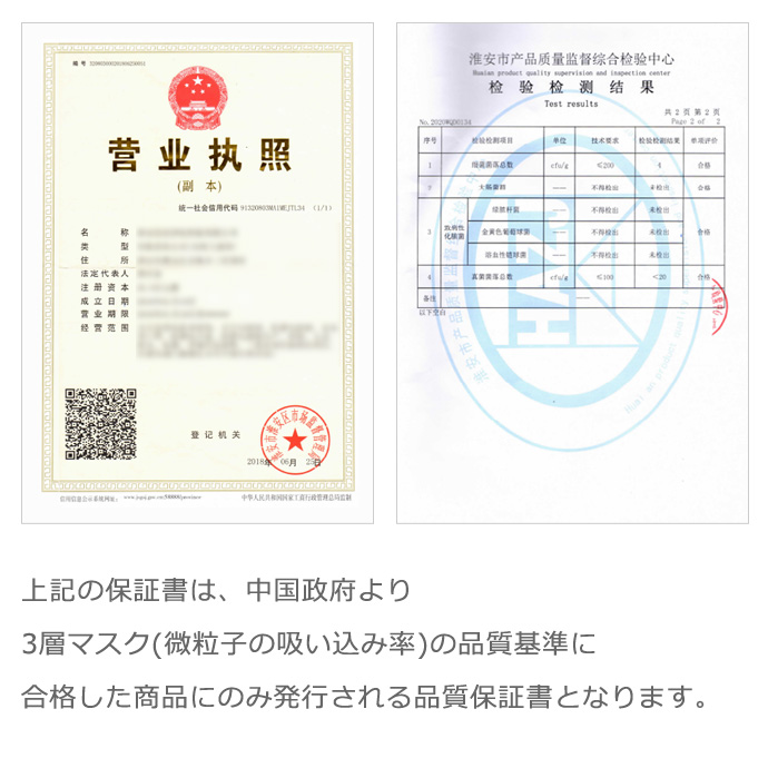 微粒子やウイルス飛沫を99%カットしてくれると検査済みのマスク。