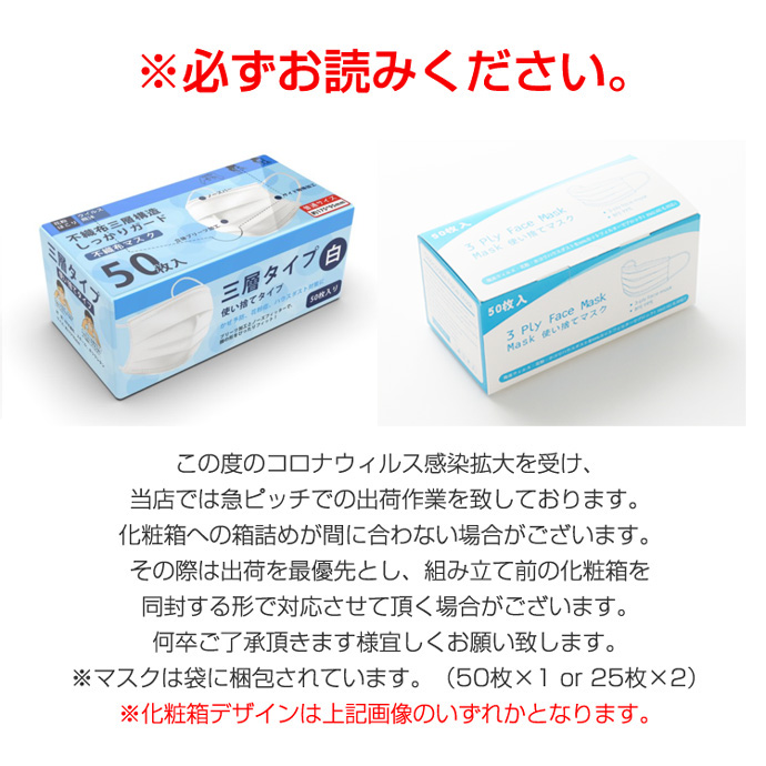 3層式 フェイスマスク マスク 50枚 使い捨て 使い捨てマスク