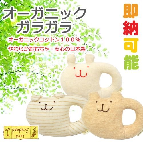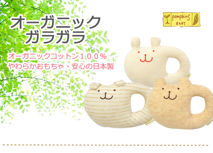 オーガニック ガラガラ 日本製 ポプキンズベビー 出産祝い オーガニックコットン