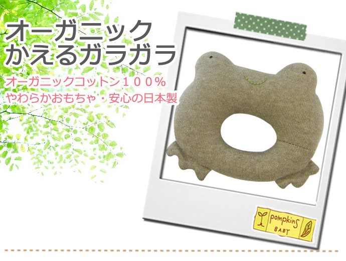 ポプキンズベビー オーガニック カエル かえる ガラガラ おもちゃ ラトル 蛙 日本製 ベビーグッズ ベビーオモチャ 出産祝い 男 女 赤ちゃん