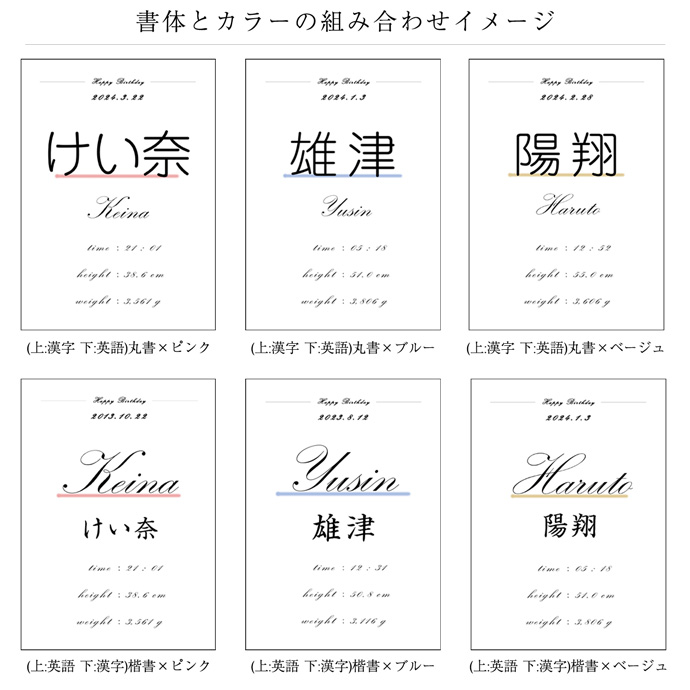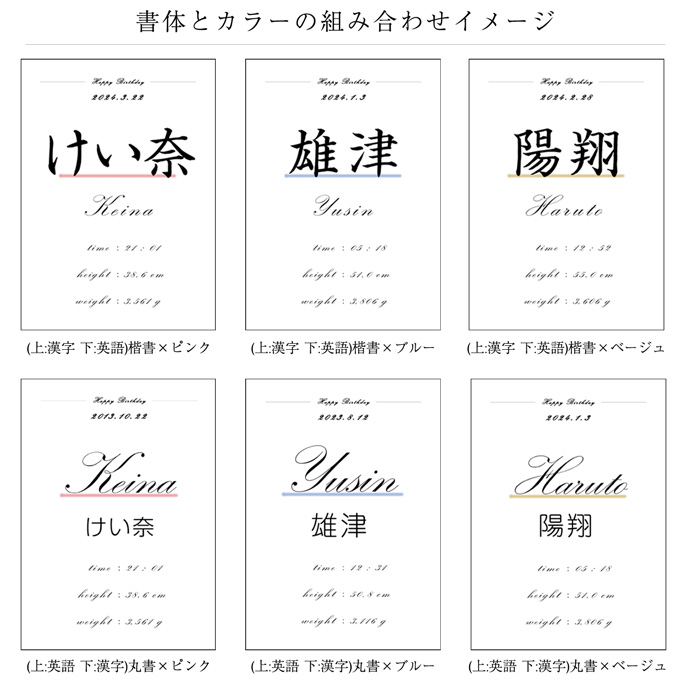 お子様のお名前、身長、体重、出生日時の記載が可能な 、