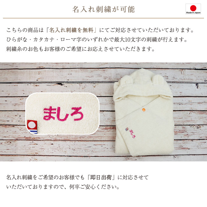 名入れ刺繍を行う場合でも当店であれば「あすつく対応」を行っております。