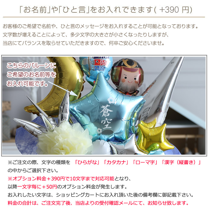 ■バルーンに名入れ(ひらがな・カタカナ・ローマ字・漢字縦書き)