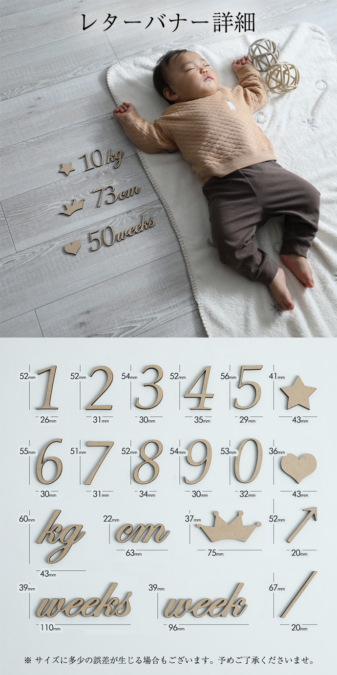 ・大切なお子様の成長を記録し、記憶に刻んでいける木製レターバナー 25枚セット