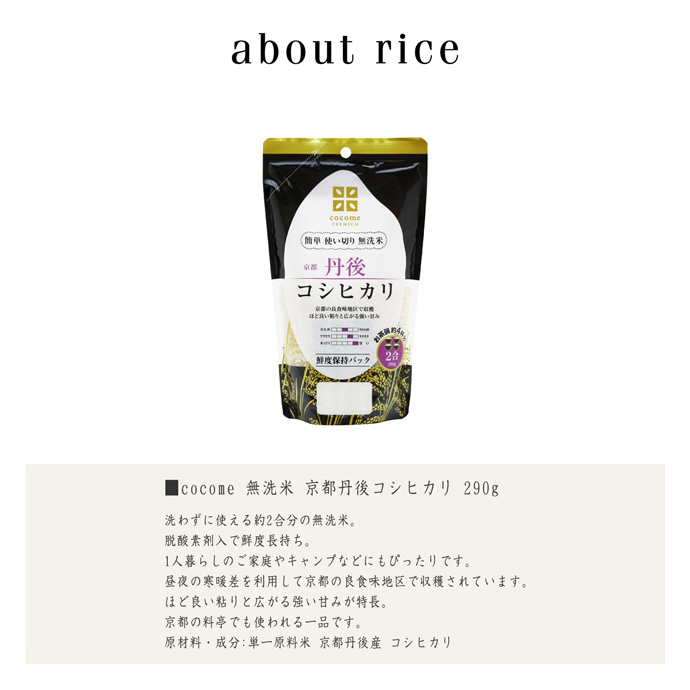 ■cocome 無洗米 京都丹後コシヒカリ 290g ×5p(2合×5パック)
