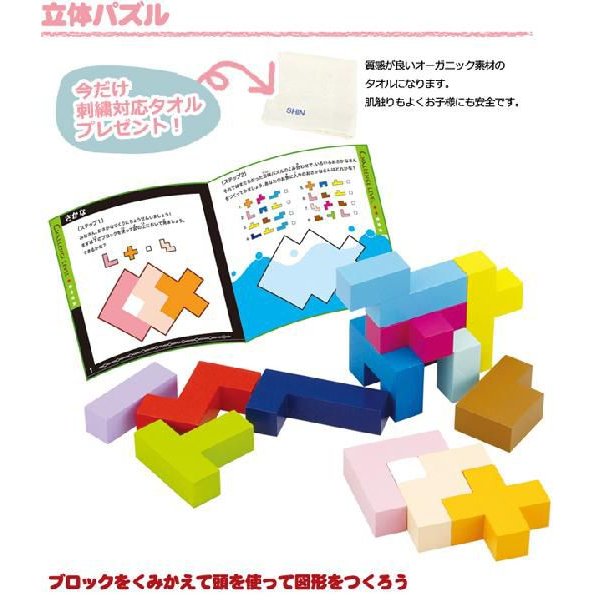 ◆付属品セット:木製ブロック15種類各1個(最小1辺2の立方体)、作品集