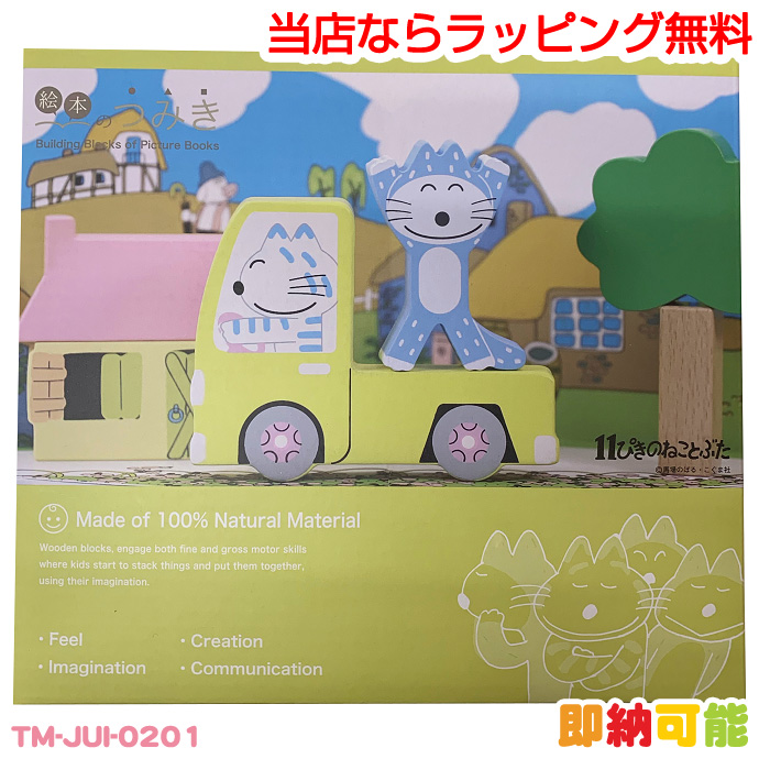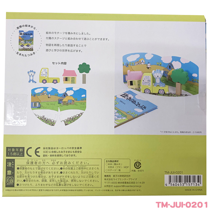 ■内容:積み木6個 (11ぴきのねこ・トラック・お家・屋根・葉・樹幹)、ステージ、リーフレット