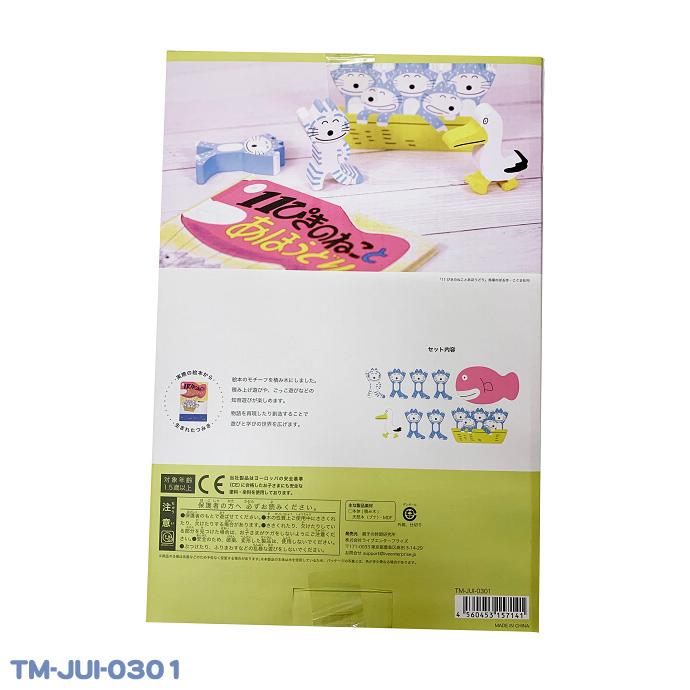 ■内容:積み木9個 (とらねこ大将、11ぴきのねこ(5匹)、おさかなの気球、気球のかごと11ぴきのねこたち、あほうどり)、リーフレット