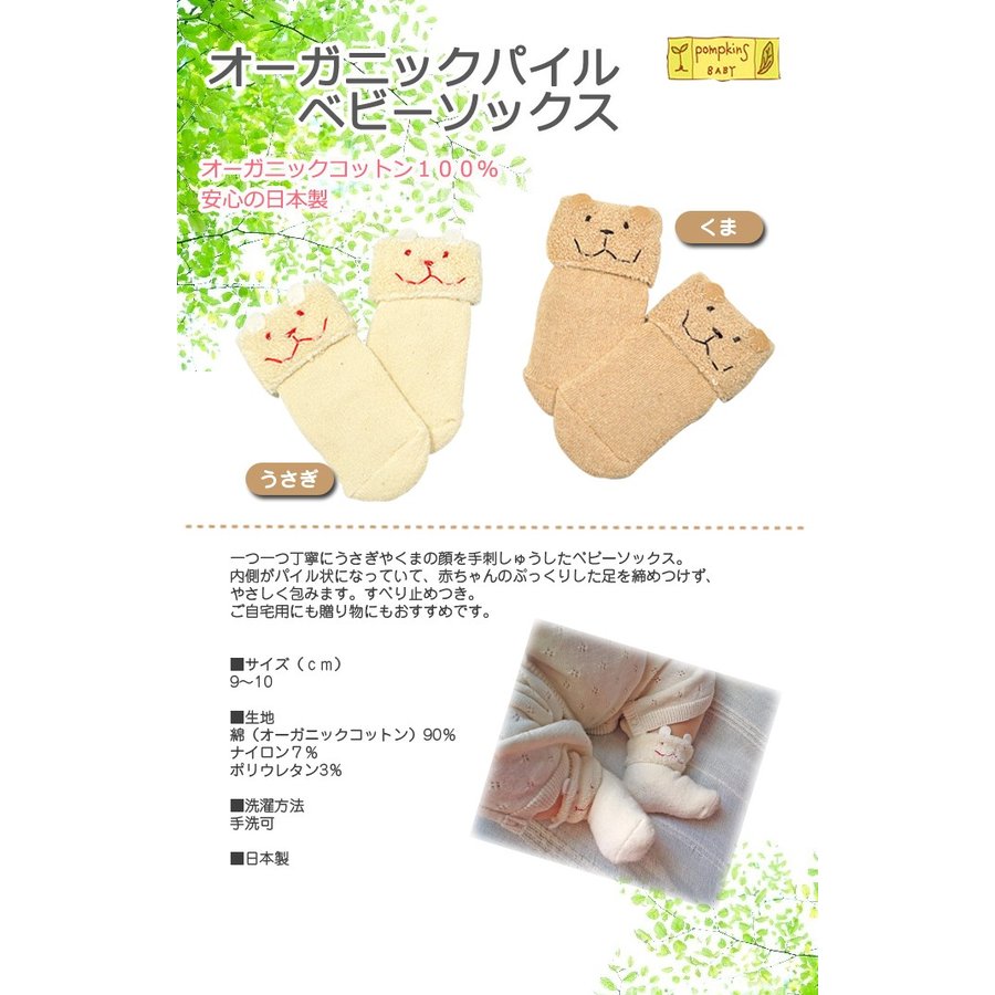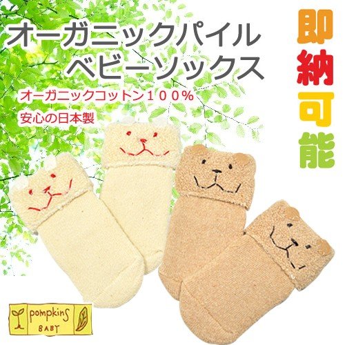 出産祝い ポプキンズベビー オーガニックパイル ベビーソックス 日本製 パイル状