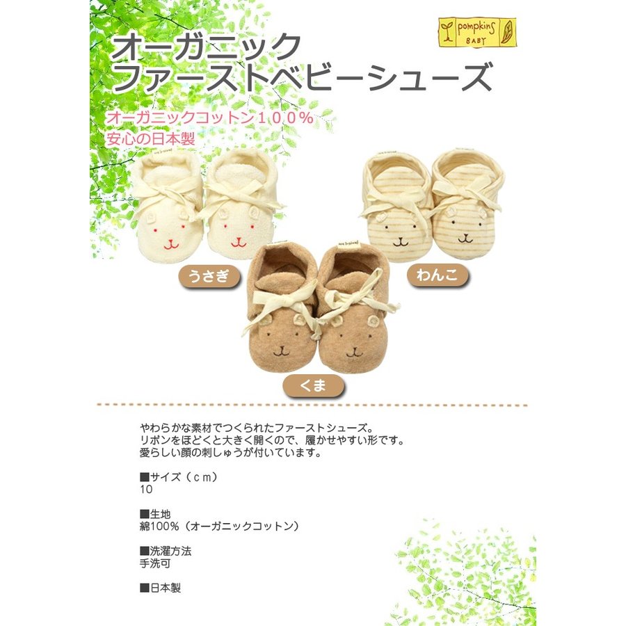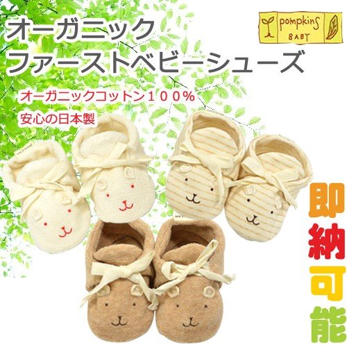 オーガニック ファーストベビーシューズ 日本製 ポプキンズベビー 出産祝い オーガニックコットン くま うさぎ わんこ