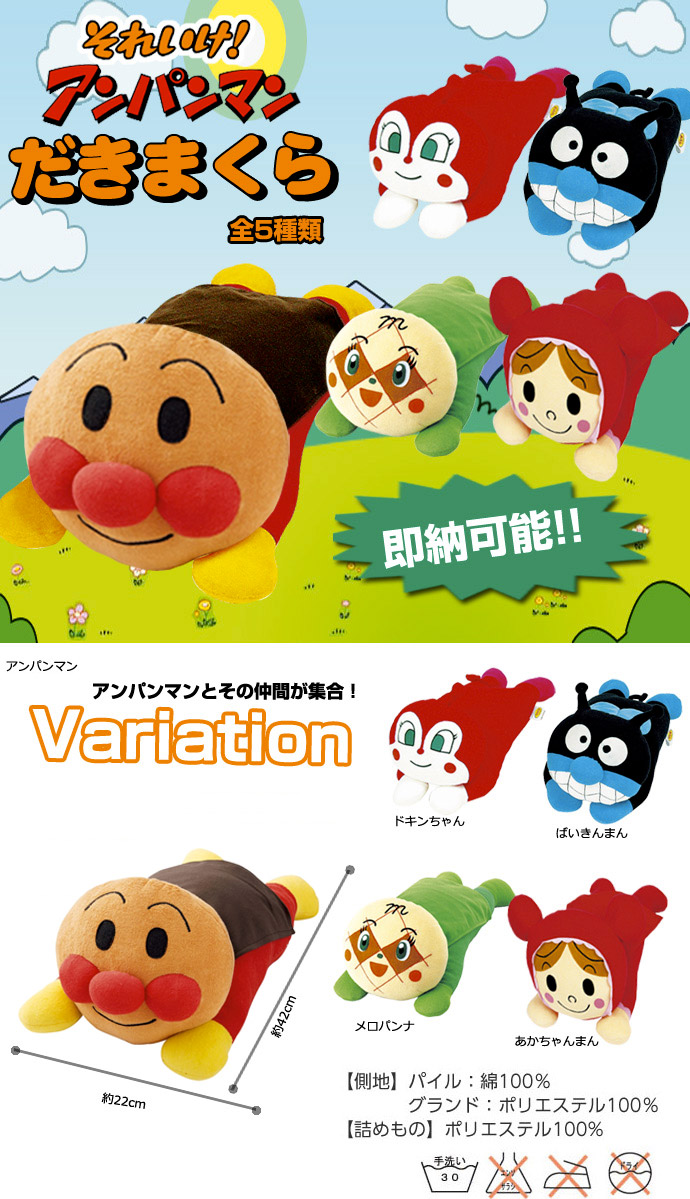 それいけ!アンパンマン 抱き枕(5種類)洗濯可 まくら 枕