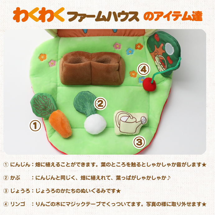 にんじん・かぶ・じょうろ・りんご
