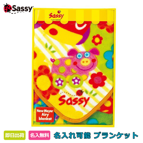 出産祝い 名入れ 刺繍 sassy サッシー ニューマイヤー ブランケット S ハッピー ドライブ 男の子 女の子 ギフト キャラクター 豪華 インスタ