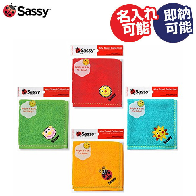 出産祝い 子供用 赤ちゃん用 sassy サッシー 名入れ 保育園 幼稚園 4種類 ミニタオル ハンカチ 男の子 女の子 ギフト 出産 評判 キャラクター 可愛い インスタ