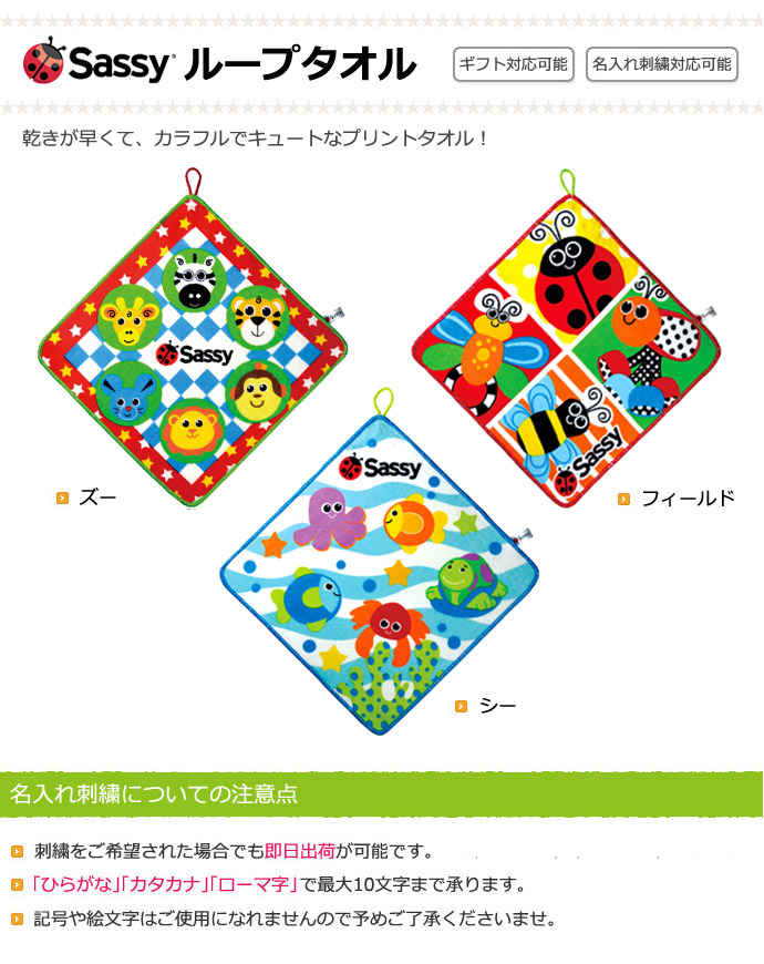 サッシー Sassy ループ付きタオル ズー・シー・フィールド