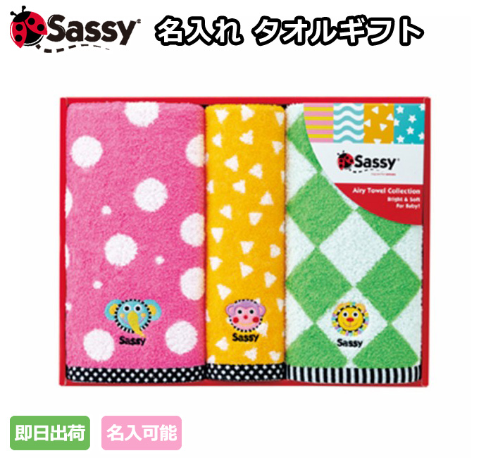 出産祝い 名入れ 名前入り 刺繍 Sassy サッシー タオルギフト2,500円セット フェイスタオル ウォッシュタオル プレゼント インスタ