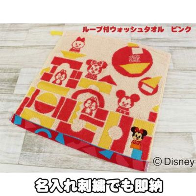 出産祝い 名入れ 刺繍 タオル ギフト ディズニー ミニー ループ付ウォッシュタオル ピンク