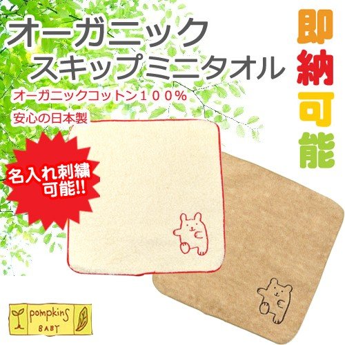 出産祝い 内祝い 日本製 ポプキンズベビー ポプキンズ オーガニック スキップ ミニタオル プレゼント 男の子 女の子 ギフト ベビーシャワー キャラクター 豪華 ハンカチ