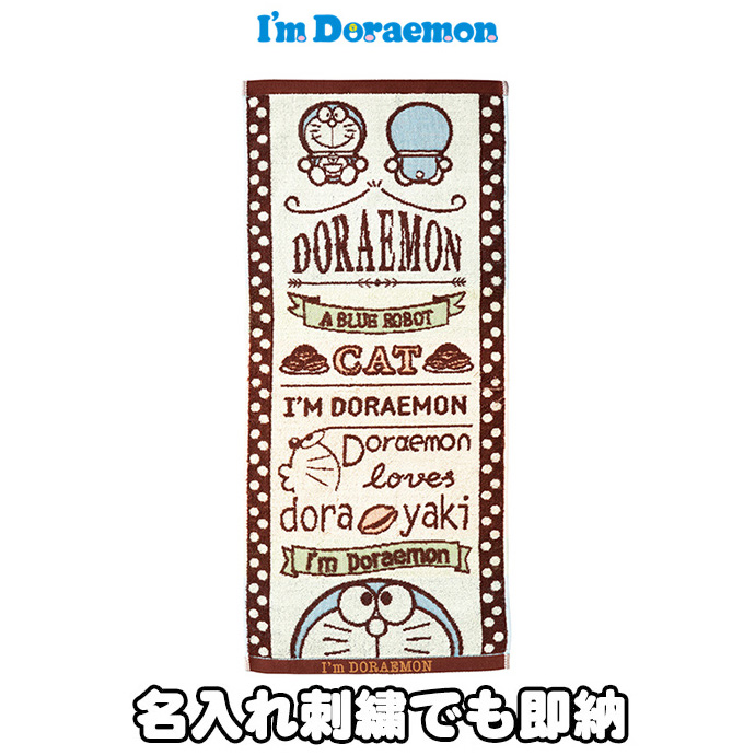 I'm doraemon お洒落で可愛い、ブラウン色、コットン100%で吸水性&手触りもバツグン☆プレゼントにも最適 幼児 園児 入園 入学 準備、ギフトにも。
