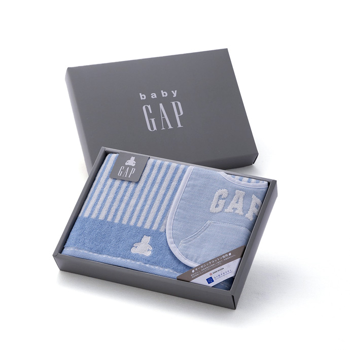 GAP タオルギフト ブルー ストライプベア オーガニック 男の子 赤ちゃん 兄弟 キャラクター 名入れ 刺繍 名前入り 出産祝いコットンタオル ラッピング ギフトセット バレンタイン プレゼント 専門