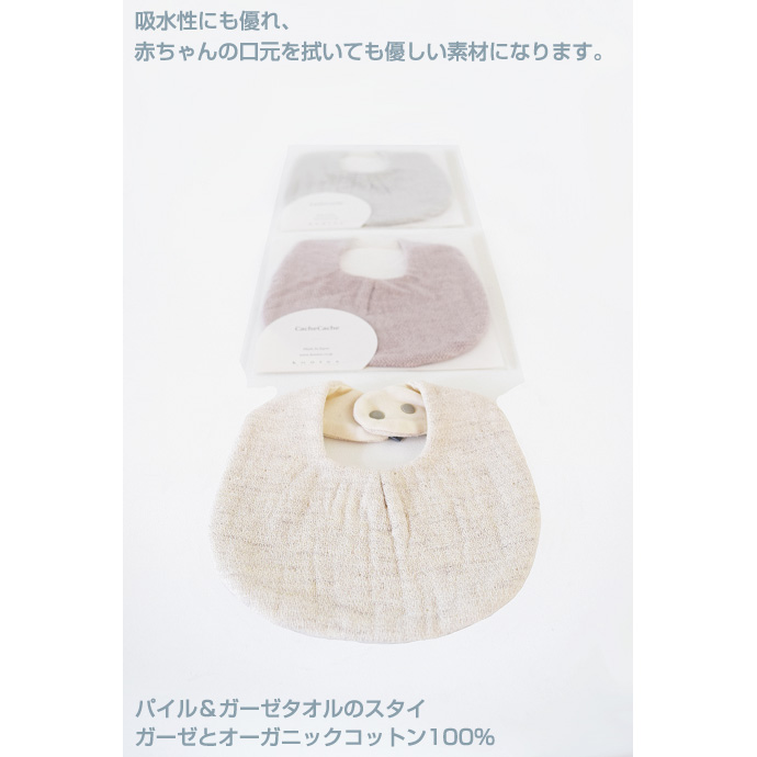 洗濯が可能なタオル素材はボリューム感と吸水性にも優れ、 赤ちゃんの口元を拭いても優しい素材になります。