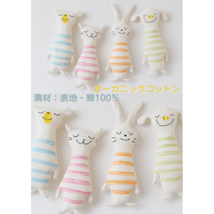 可愛らしいキャラクターに、表情とボーダーをやさしい手描き風刺繍でデザインしました。