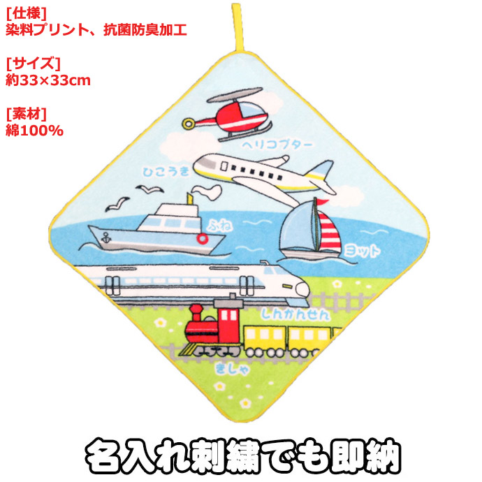 誕生日祝い タオルハンカチ のりものたち 乗り物 男の子 息子 子供 孫 グッズ 可愛い 人気 流行 名入れ 名前 刺繍ギフト はんかち ミニ ループタオル ハンドタオル カラフル ラッピング プレゼント