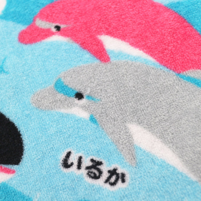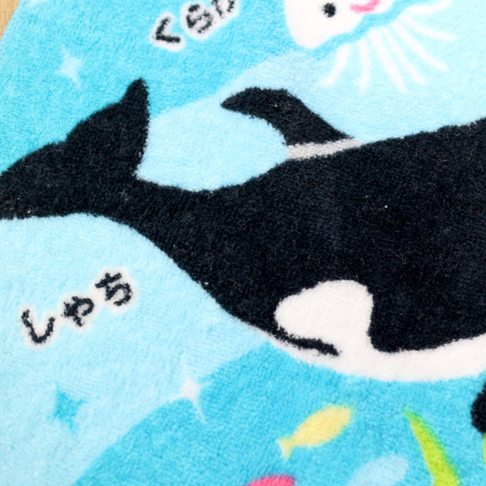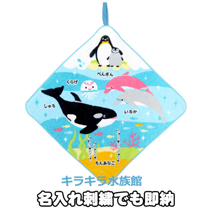 インスタ映え カップル 友達 誕生日 名前入り 刺繍 名入れ 出産記念 同僚 OL ひも付き ハンカチ ループタオル ブルー 青 キラキラ水族館 粗品 プレゼント ノベルティ バースデー メモリアル オシャレ