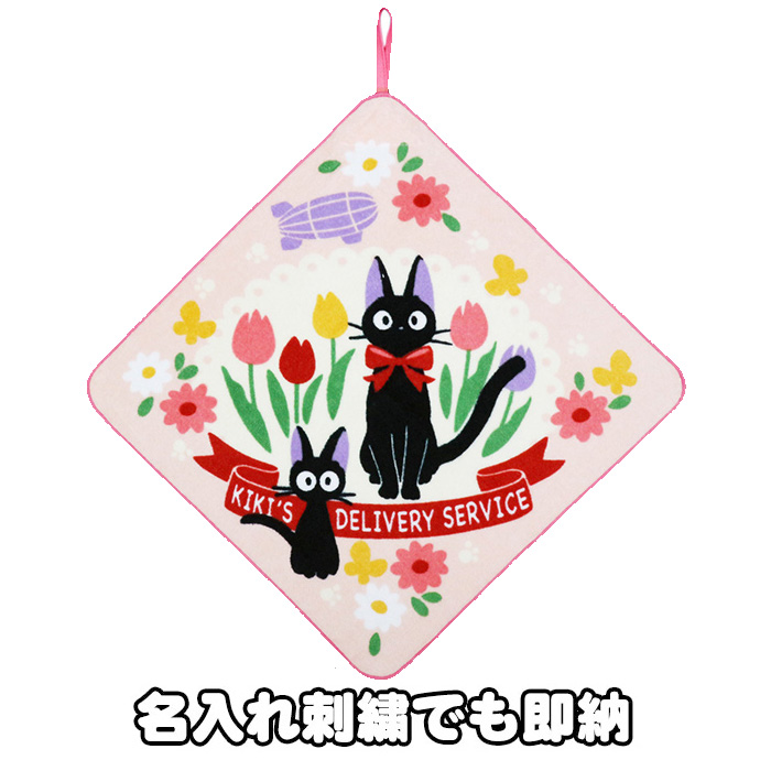 出産祝い 魔女の宅急便 ジジ ループタオル 花畑のジジ親子 名入れ 名前入り 刺繍