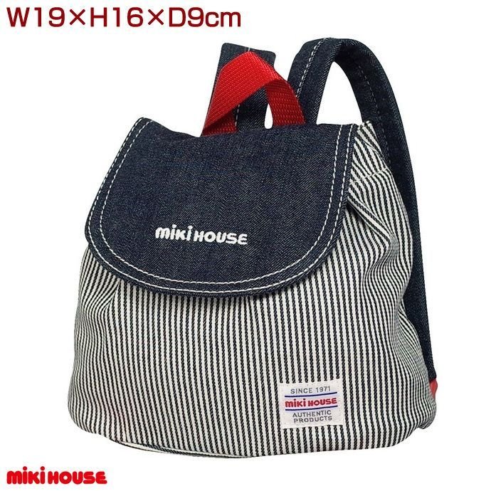ミキハウス 日本製 ヒッコリーストライプ ベビーリュック お出かけバッグ 送料無料 誕生日祝い 出産祝い