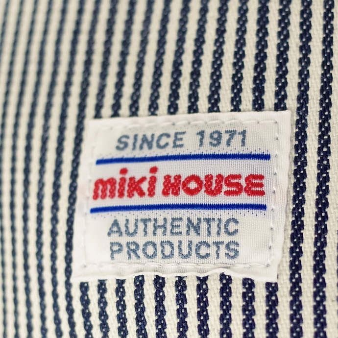 フタはデニムで「mikihouse」のロゴ刺しゅう入り。