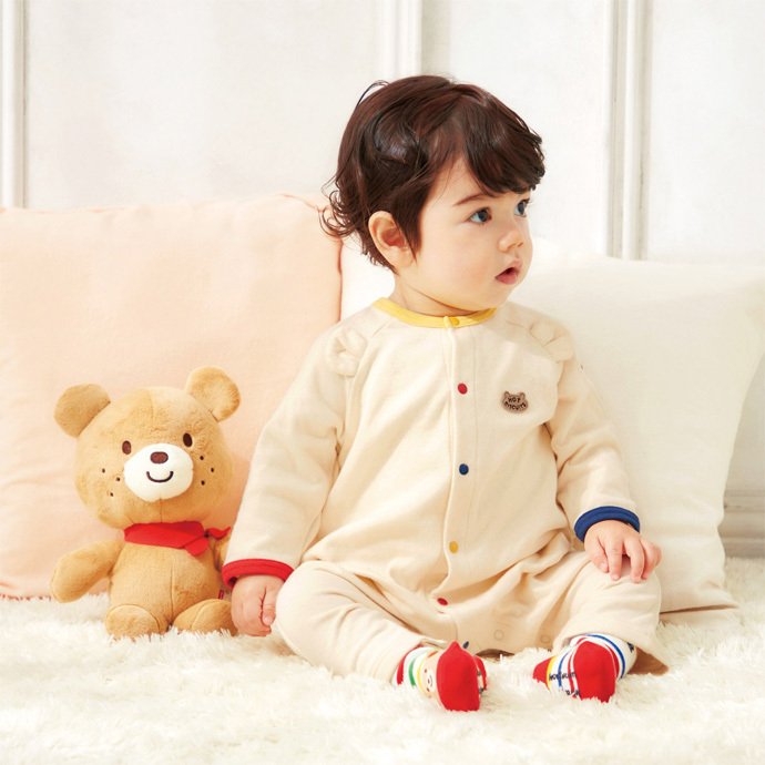 やさしいアイボリーのカラーで、男の子女の子どちらでも着ていただけます。