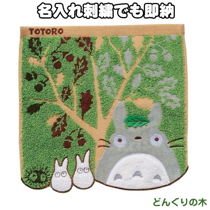 どんぐりの木 となりのトトロ キャラクター ミニタオル ハンカチ 名入れ 名前入り 刺繍