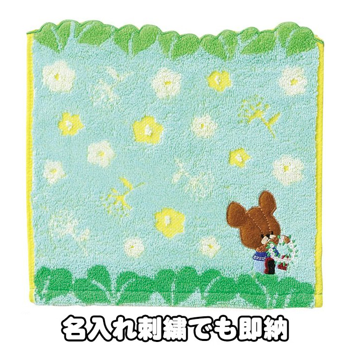 出産祝い くまのがっこう ジャッキー ハンカチ ミニタオル 刺繍 名入れ ナチュラルリーフブルー