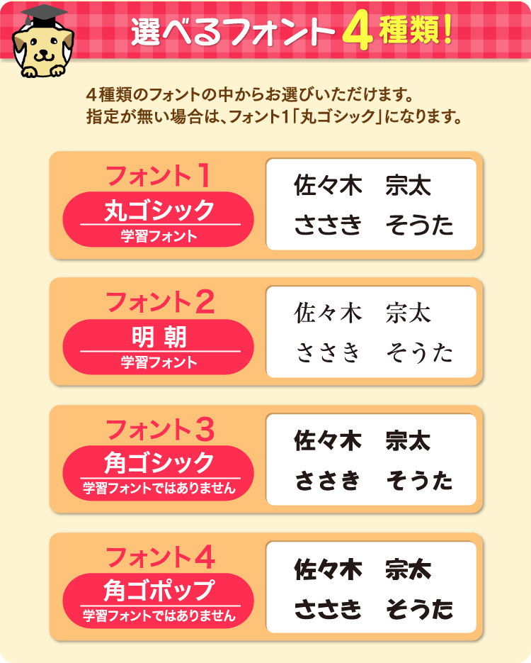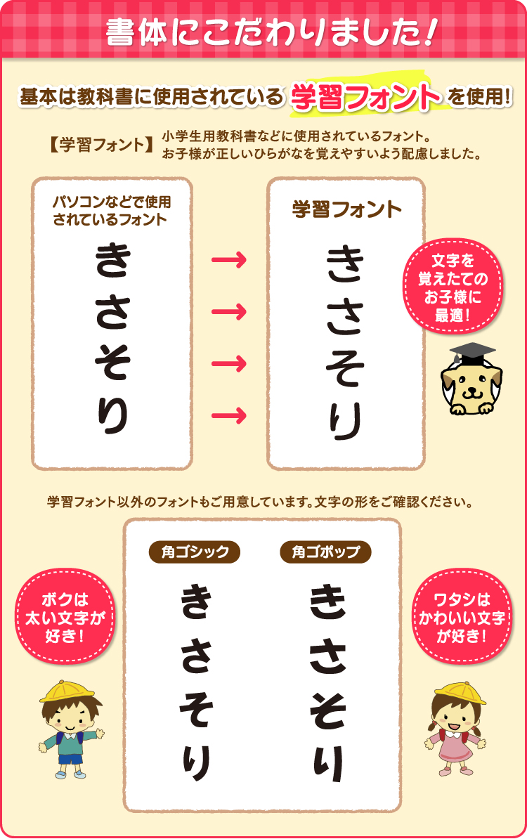 【送料無料】お好きなデザイン49種類から選べる!ひらがな・カタカナ・漢字・ローマ字に対応!