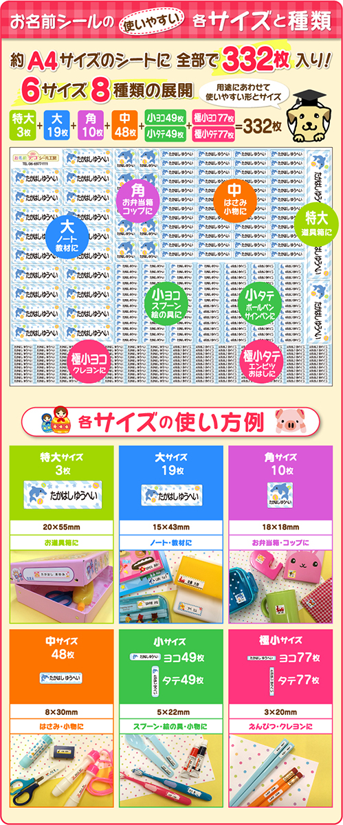 小さめシールが増えて文房具や小物のお名前付けに大活躍!