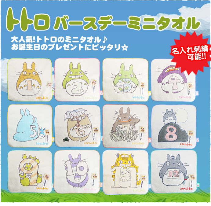 出産祝い 御祝い お祝い 名入れ 名前入り 刺繍入り スタジオジブリ 二馬力 となりのトトロ バースデー 幼稚園 保育園 入園 入学 ハンカチ ミニタオル(12ヶ月)