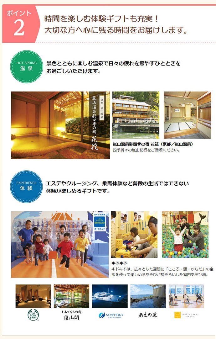 温泉旅行や体験型ギフトなど、様々な世代の方に喜ばれるアイテムが勢ぞろい!