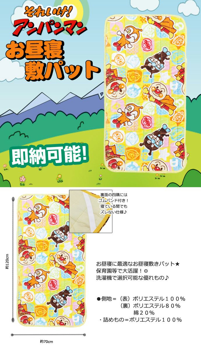 他の画像を見る 通販 おもちゃ 男の子 女の子 男女兼用 クリスマス プレゼント かわいい 人気 ランキング 男 女 記念日 お誕生日 ご褒美 お祝い 入園 入学 それいけ!アンパンマン お昼寝敷パット 当店特別価格 ¥ 4,400 税込 詳細を見る お気に入りに登録する